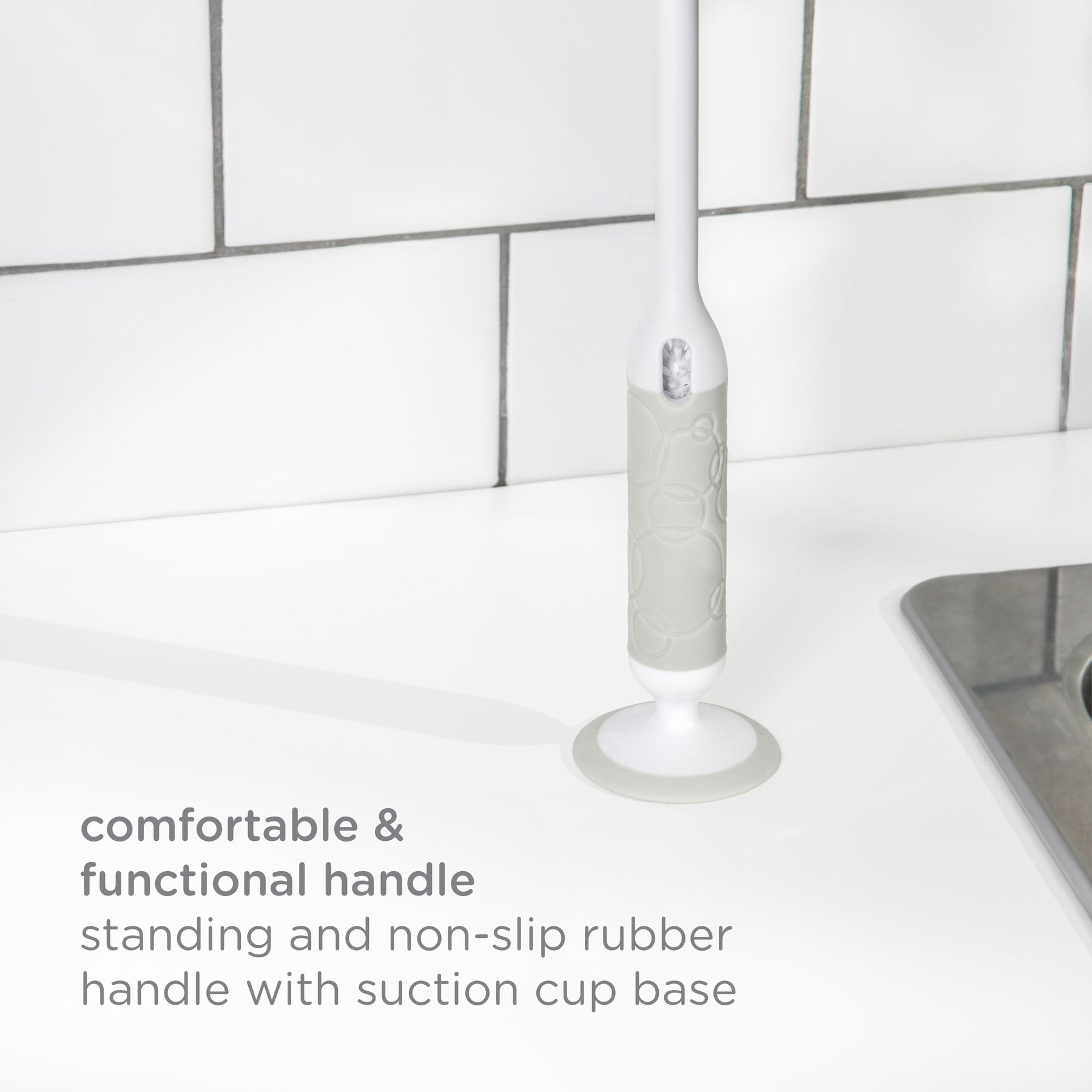 standing and non-slip rubber handle for easy grip with suction cup base