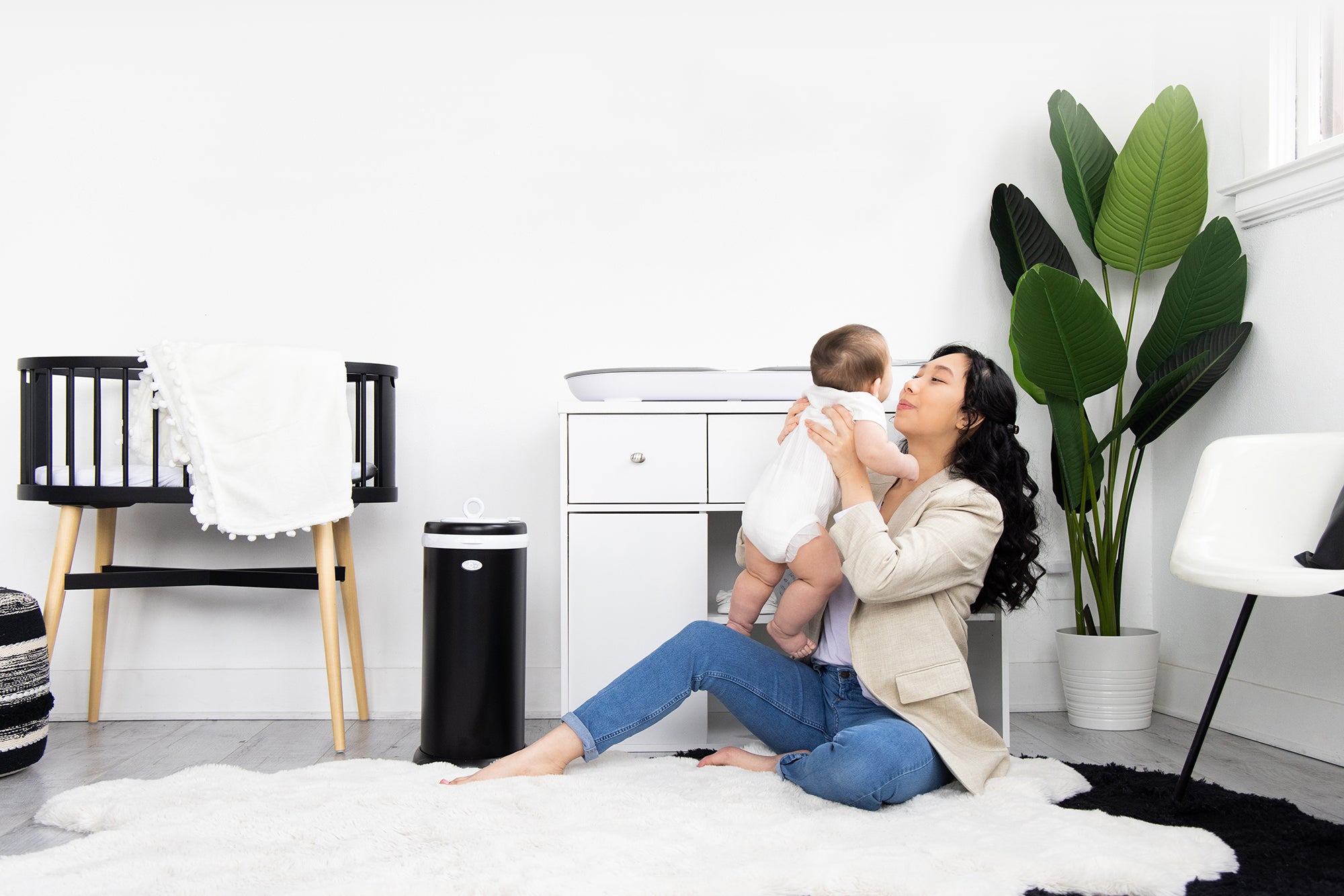 The Ubbi diaper pail is designed to be easy-to-load, use, empty and clean.